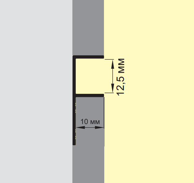 Профиль РП-АКП-10-12,5 обеспечивает тонкий контур для проетов, создавая линию тени. Может использоваться в целях остекления, в качестве паза для секла. Профиль может использоваться как в вертикальной, так и в горизонтальной плоскости. Для плитки и панелей толщиной до 10мм, имеется перфорация (отверстия) для клеевого раствора.